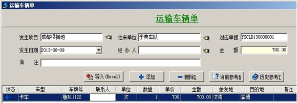 2. 【運輸車輛成本】一般用于統(tǒng)計公司租賃車輛周轉(zhuǎn)材料所產(chǎn)生的成本,成本根據(jù)運輸車輛單來統(tǒng)計。
