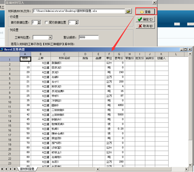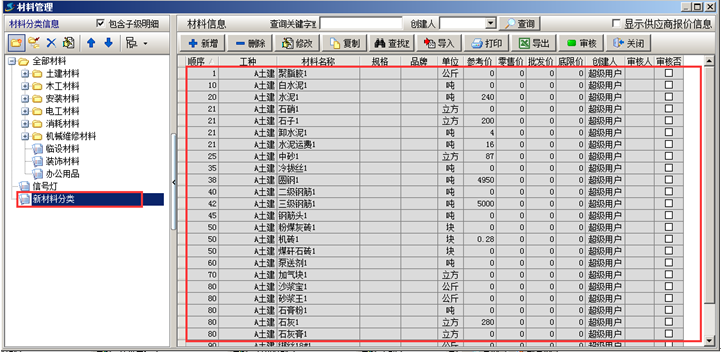 一般在建賬初期,基礎信息比較多,需要將基礎信息錄入到系統中的話工作量比較大。可利用批量導入的功能將基礎信息導入到系統中。首先需要講基礎信息整理到Excel表格中,方便導入。以材料信息的導入為例,其他信息的導入可參照。