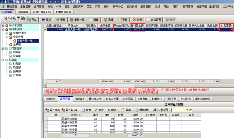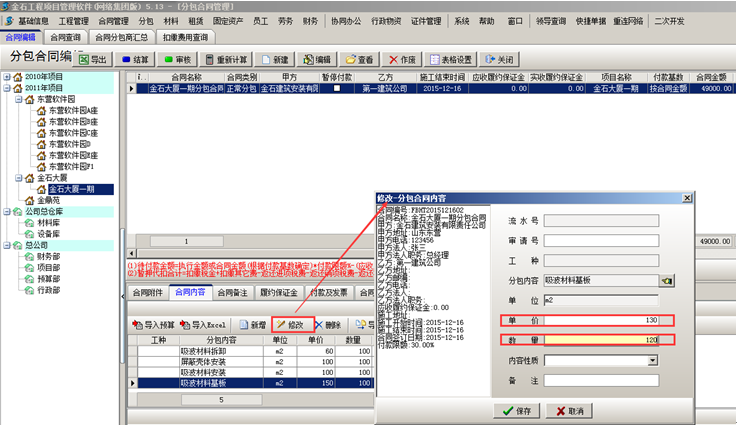 合同內(nèi)容修改則系統(tǒng)根據(jù)合同內(nèi)容的更改重新計(jì)算合同金額,如圖: