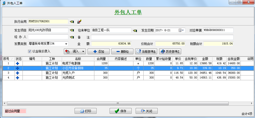 不同點 :【外包人工單】除可以進行進度填報,還可以產生應付款,進入項目成本