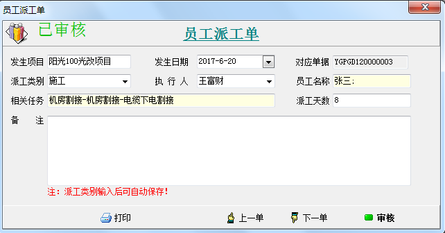 3、派工人員根據完成情況進行施工日志填報,“確認完成”打鉤可設置提醒人查看