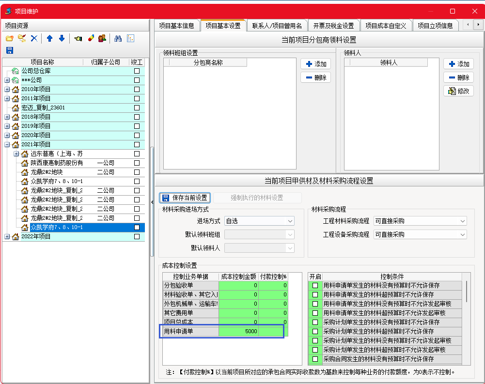 金石工程項目管理軟件項目維護增加用料申請控制功能,用于控制用料申請控制,超出控制金額系統會自動報警。