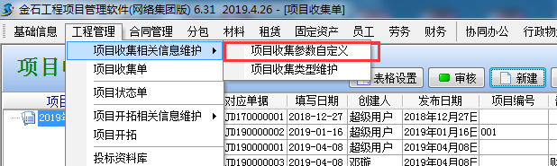 2、項目收集類型:菜單欄 “工程管理模塊”→“ 項目收集類型”