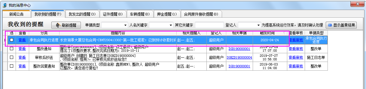 提醒人查看處理完消息后系統(tǒng)還可以顯示處理人。