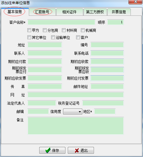 在工地項目管理系統(tǒng)左側(cè)選好分類,然后點新增新建往來單位,填好往來信息即可。(也可以對建好的往來單位進行修改,刪除操作,其中帶*的為必填項)