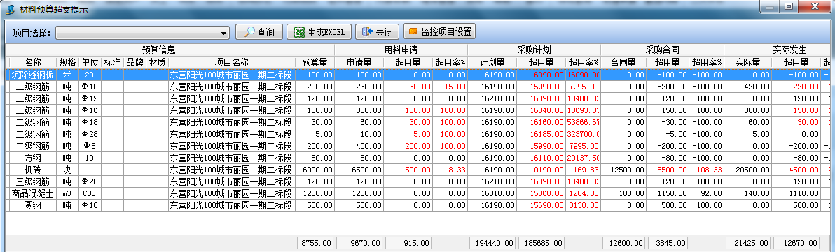 *注:上圖中字體變?yōu)榧t色字體的為超與預算對比量,負數(shù)數(shù)值為在預算范圍內