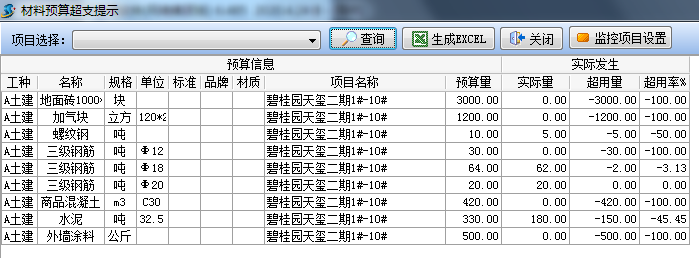 預算超支提示(按照項目監(jiān)控超支)