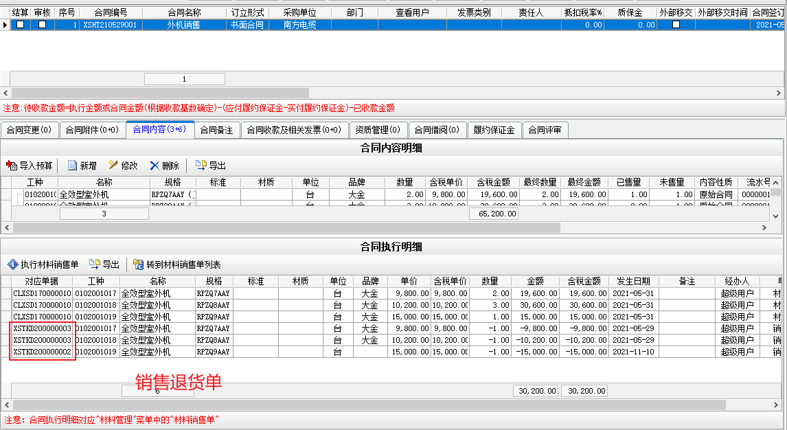 銷售合同中查看【銷售退貨單】明細(xì),如下: