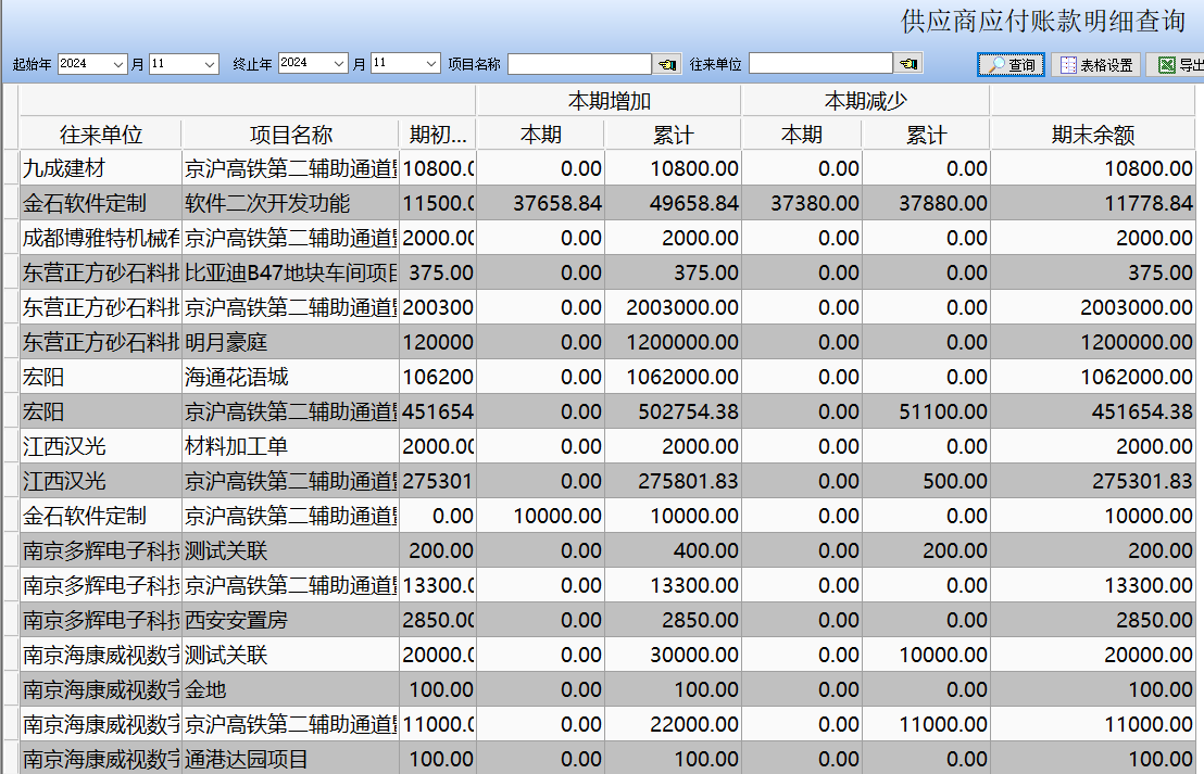 金石軟件更新——增加應付賬款明細查詢
