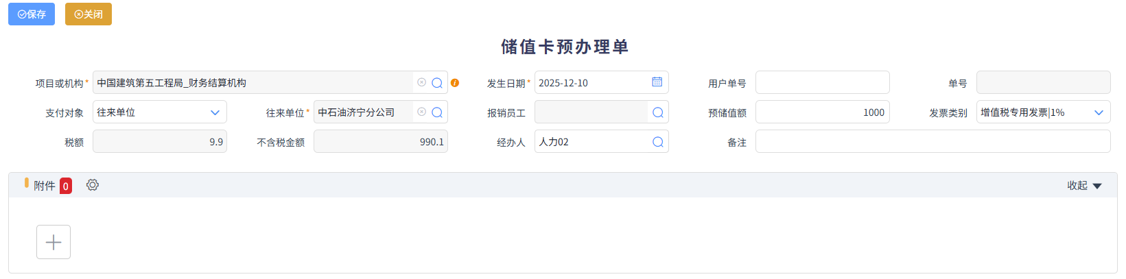 儲值卡預(yù)辦理,為儲值類卡或會員卡提前申請費用,如下圖所示