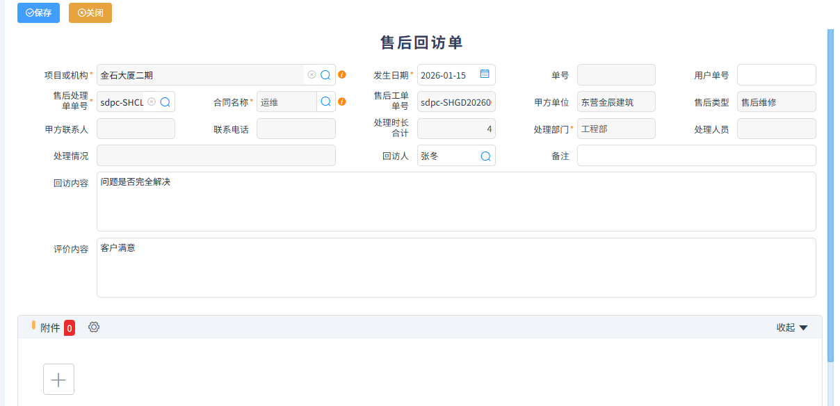 本模塊是專門針對施工企業(yè)工程結束后進行售后維?;蛘呤┕て髽I(yè)接售后運維項目所設立的模塊。可以管理巡檢、售后工單、技術人員派單、現(xiàn)場添加維修記錄、客戶售后回訪等功能,并能關聯(lián)工程結算或者其它收入結算,進行收款。