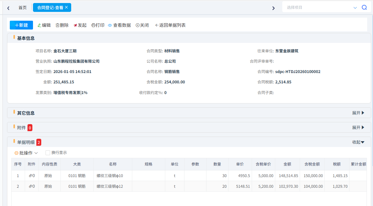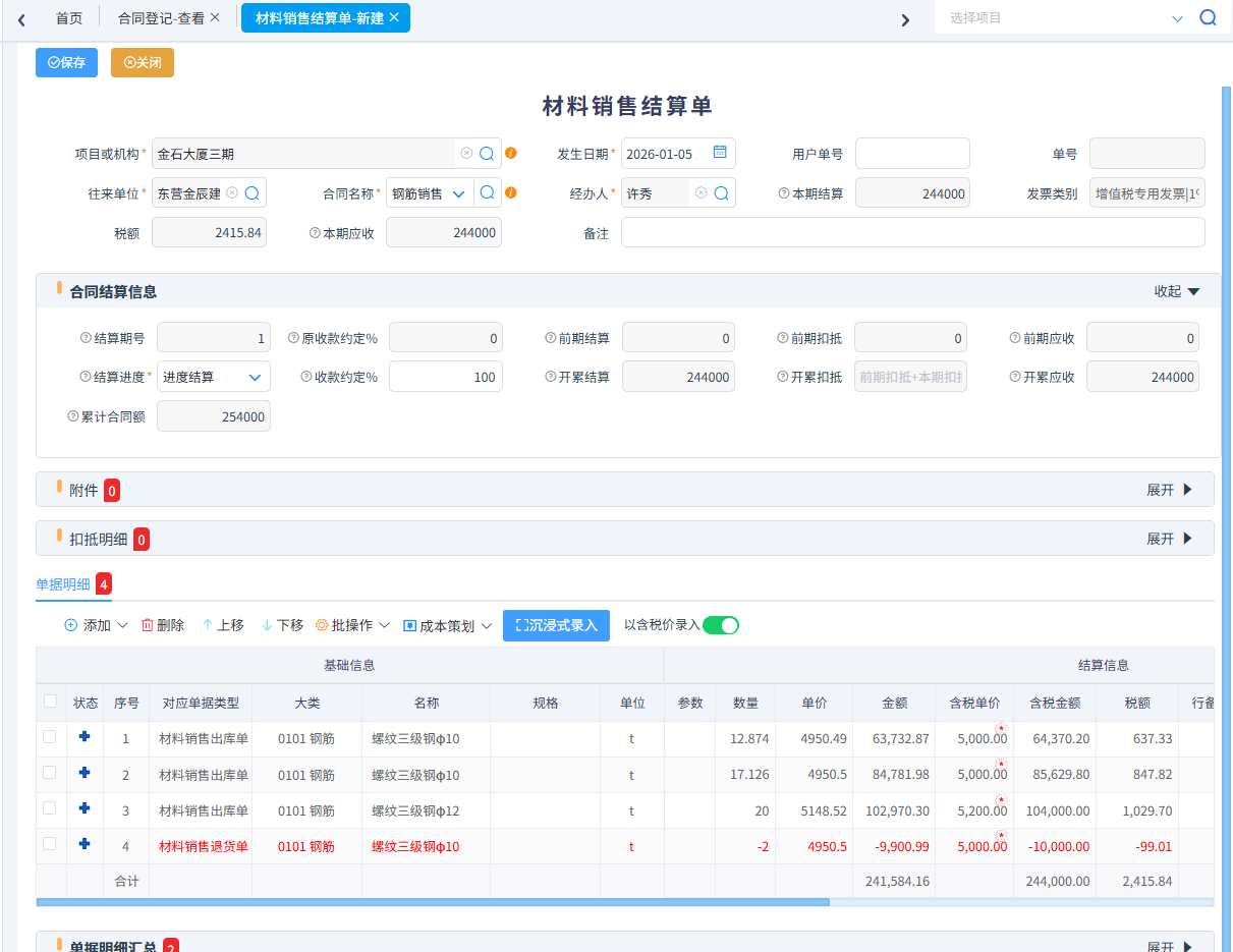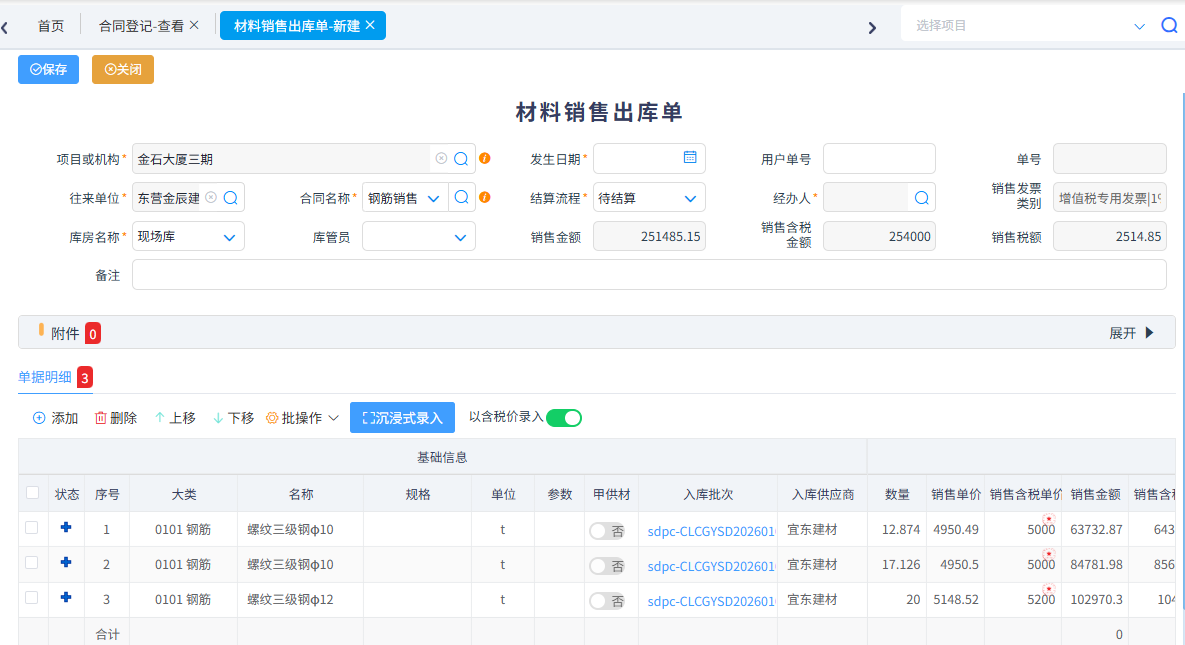 針對(duì)系統(tǒng)集成、市政路橋等行業(yè)有銷售業(yè)務(wù)可以填寫銷售合同,根據(jù)銷售合同生成材料銷售出庫單、材料銷售結(jié)算單。