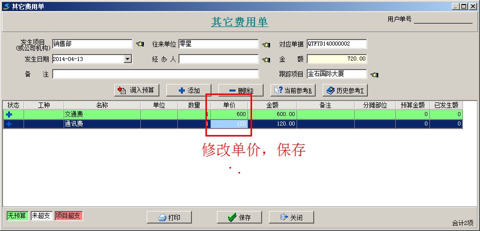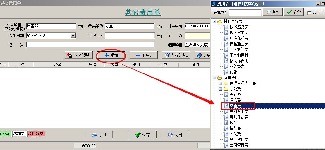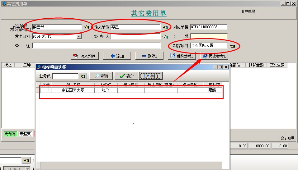 2、投標之前發生的費用,可以錄入【其它費用單】。